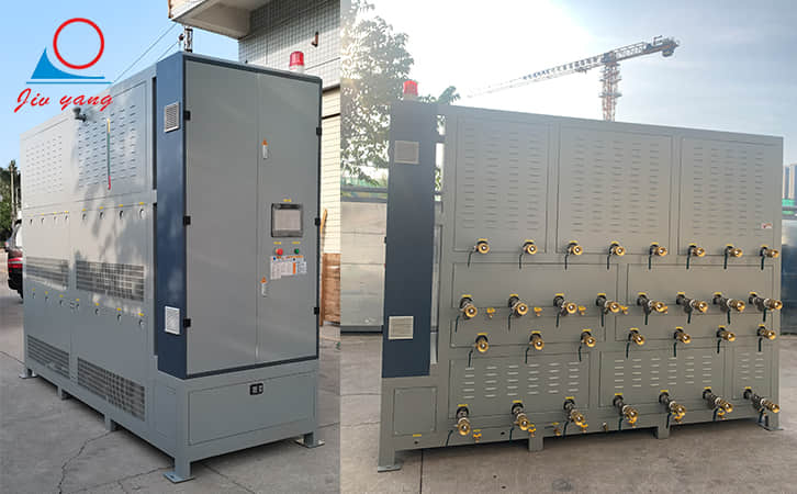 150度三合一高温油温系统为用户定制款多机一体油温机,将三套加热系统设计在一台箱式机组内,提供三个不同的独立的温度控制,适用于像挤塑、模压成型等需要多阶段控温的生产工艺温度控制,三合一高温油温系统使用高温导热油为传热介质,传热效率高,保温效果好。
